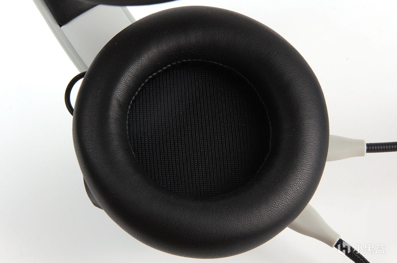 拜雅MMX100遊戲耳機耳罩深度約23mm,較大深度可以有效降低耳廓壓力。爲保證隔間效果,耳罩邊緣使用人造皮革材質製作,優點是隔音效果非常好。耳罩內部使用較爲柔軟的海綿材質填充,佩戴起來比較舒適,對眼鏡腿也有較好的兼容度。中間則爲兩層編織物包裹一層海綿,兼具阻擋灰塵和調音的作用。