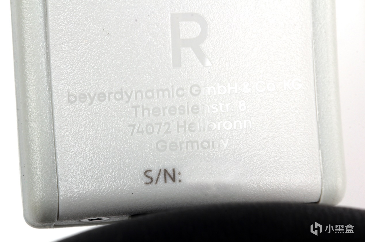 拜雅MMX100遊戲耳機頭梁採用伸縮式調節,每側具有11個可調節檔位,頭梁拉出時,前面8個檔位的刻度感非常清晰,9檔和10檔由於角度原因,刻度比較柔和。雖然老鳥們可以憑藉耳機線快速分辨耳機左右,但拜雅還是在頭梁兩端刻下“L/R”的左右標識,以方便新手玩家區分左右耳罩。L標識下方刻有各種認證及Made in china的標識,R標識下方則是拜雅德國公司所在地址和SN碼。