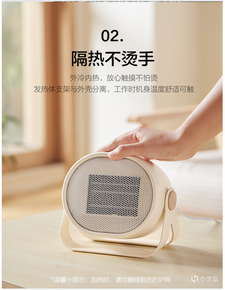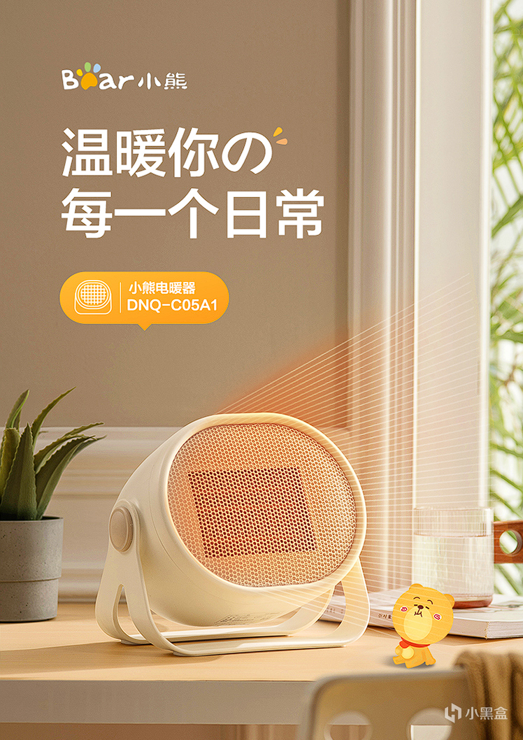如果说第一款桌面神器的作用范围比较有限的话,那么这款桌面取暖器,就算是十分全面且无限制了。我个人是非常喜欢小熊的电器的,时尚、创新、且耐用。这款桌面取暖器也没让我失望,取暖器采用的是PTC陶瓷发热,3秒就迅速制热,而且采用的是无光加热,让你在使用过程中不会感到刺眼,虽然是一点小设计,但是足以显示出小熊的贴心!。
