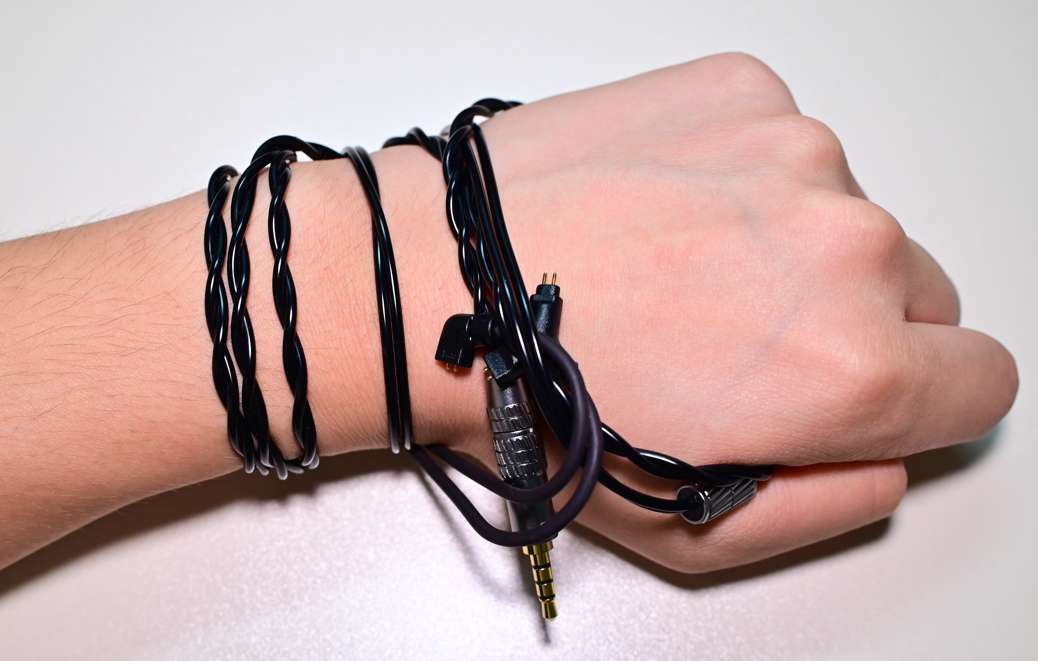 與可諾卡相比,CVJ 刺客的耳機標註標註了左右聲道,不透明的輕奢質感金屬腔體,輕量化設計長久佩戴舒適。線材爲無氧銅線材,更粗更耐用(於是就有下面這款奇奇怪怪想法的圖片),總長125cm。彎曲的線材頭部讓佩戴更加貼合,不易掉落。阻抗爲28Ω±15%,靈敏度爲112dB±3dB,頻響範圍爲10Hz-40000hz。
