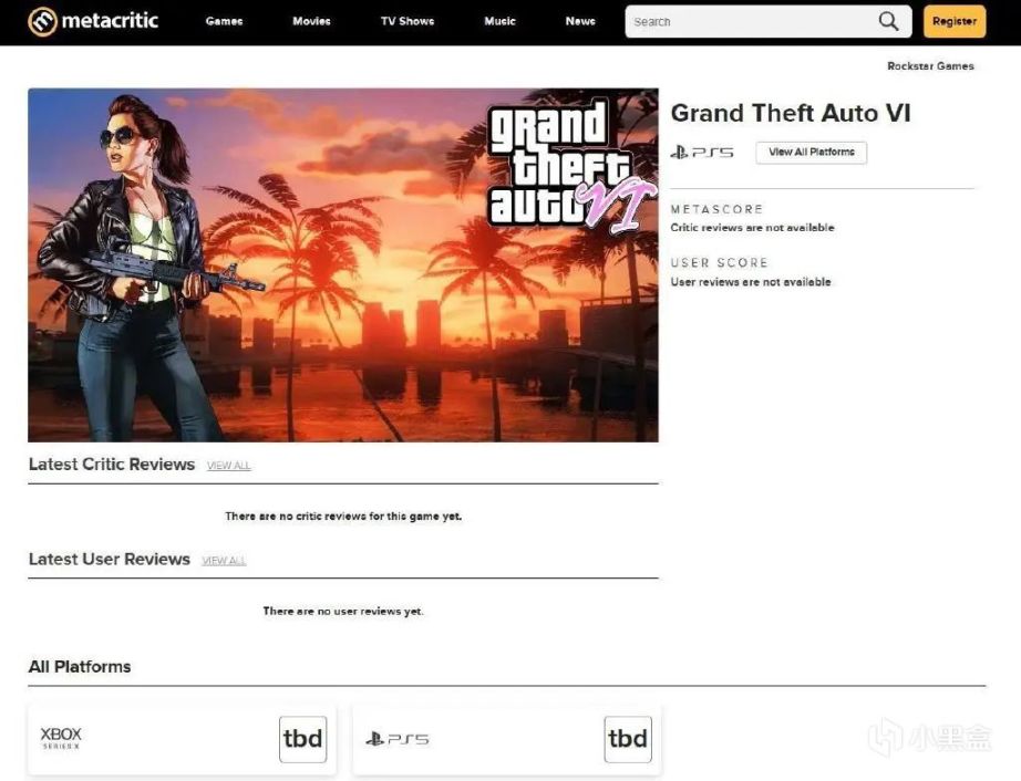1、知名评分网站Metacritic(M站)今日上线了《GTA6》的评分页面,并显示《GTA6》将登陆Xbox Series X/S和PS5,其他平台信息暂无。