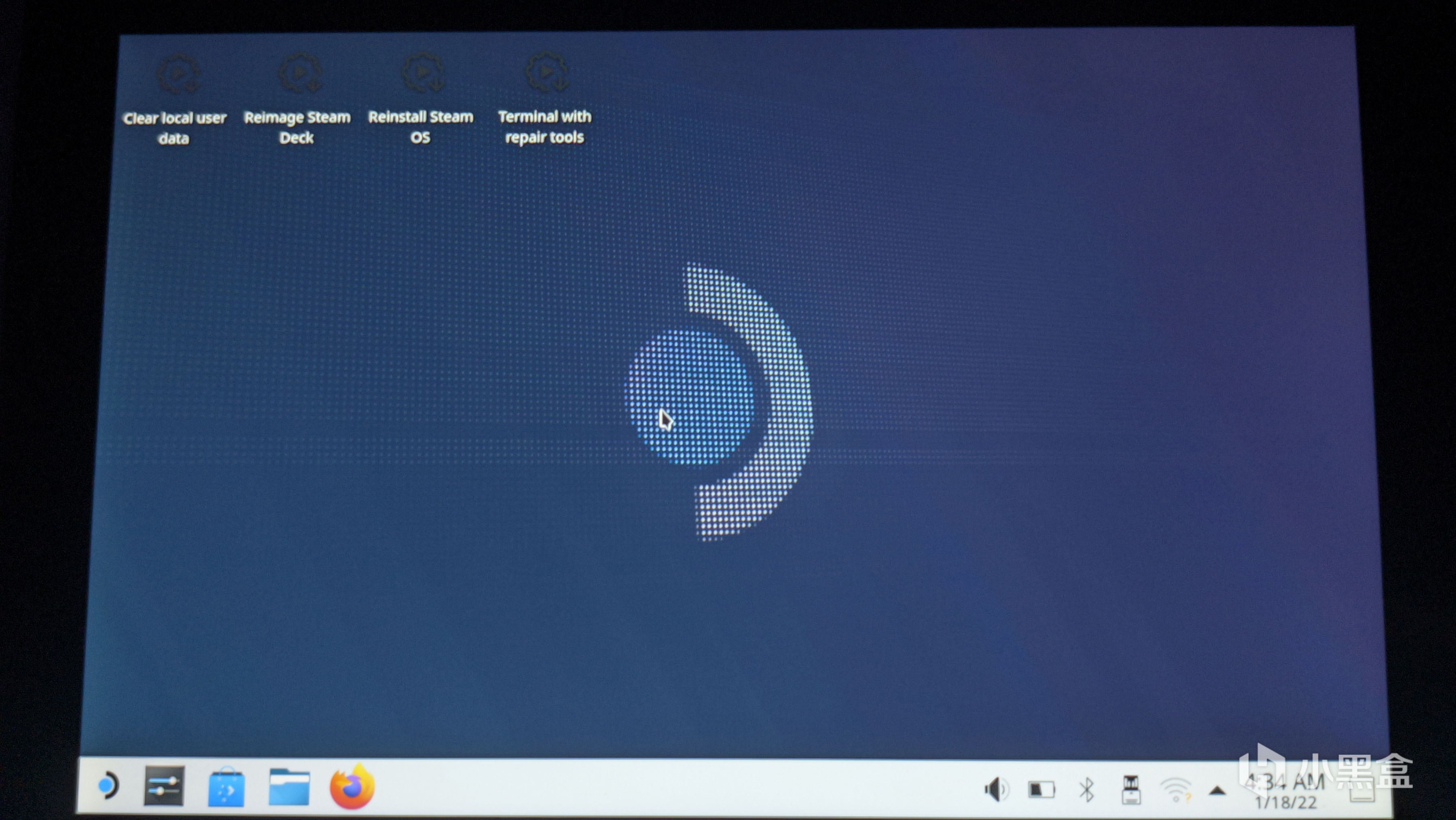 在进入系统后,默认是进入STEAM OS的桌面模式,不同的是,在桌面上多了几个图标。其他几个暂且不管,重点是从左往右数的第二个图标,重装系统中需要用到的也只有他。直接双击运行,如果觉得手柄操作不习惯,可以接个鼠标键盘,前提是扩展坞能承受住三个USB设备。