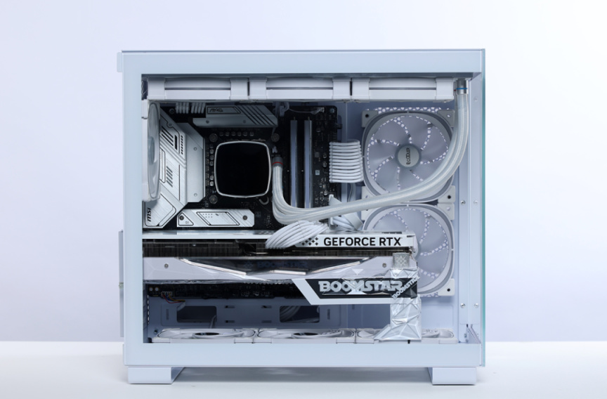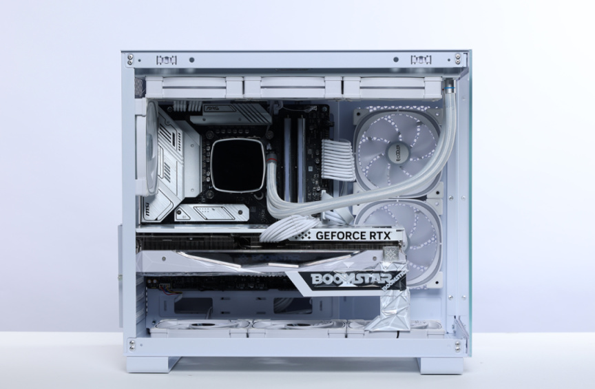 光说不练假把式,颜值达不达标,素颜先验证。白色为主配件的组合,搭配270°全视角海景房机箱,颜值方面,首先完成任务。