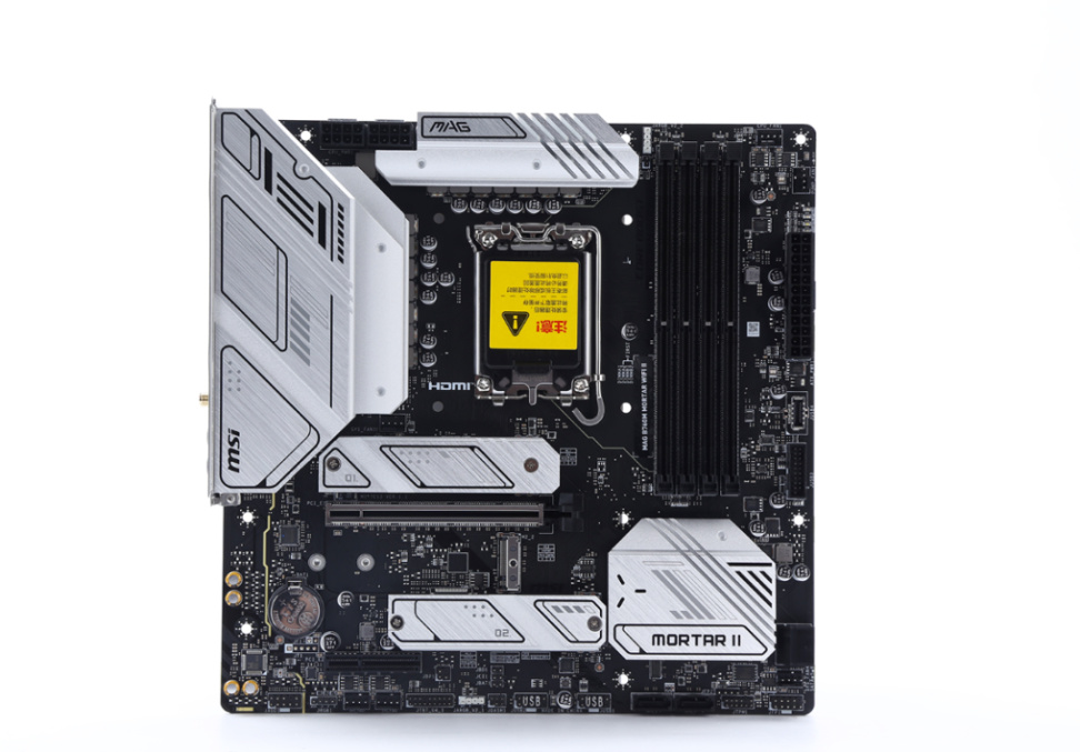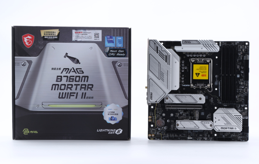13代带K的酷睿起,睿频拉满就能轻松达成5G+早已不是啥秘密,所以主板选择上,大部分玩家都会倾向性价比更高的B760主板,咱今天装机使用的是全新升级过的微星MAG B760M MORTAR WIFI II主板。