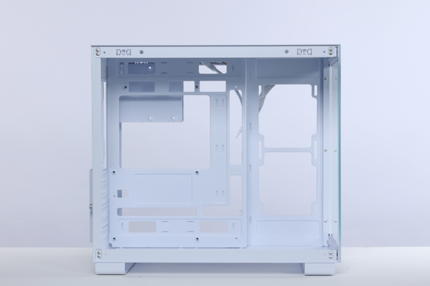 前+侧双面钢化玻璃面板,搭配无立柱设计,可以提供270°的可视角度。左右侧板采用球形卡扣固定,支持免工具快拆,装机跟日常维护都非常方便;
