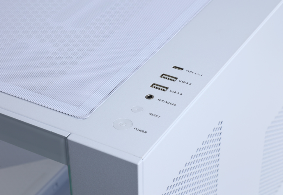 I/O面板则位于机箱顶部一侧,提供了1个USB 3.1 Gen2 Type-C、2个USB 3.0、2合1音频口及1组开机重启键,在时下来讲,真Type-C,就是妥妥的良心。