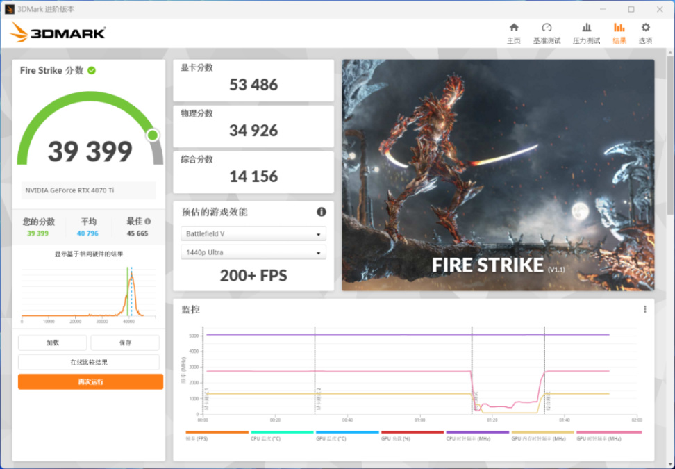 Fire Strike显卡DX 11性能基准测试,显卡得分53486分,物理得分34926分;