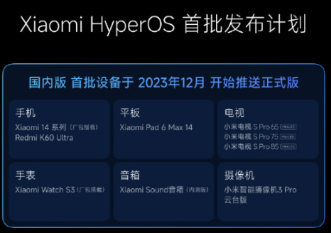 小米发布了以上功能的时间计划表,预计小米14系列和Redmi K60 Ultra、小米Pad 6 Max14,、小米Watch S3等设备,于12月开始推送正式版。