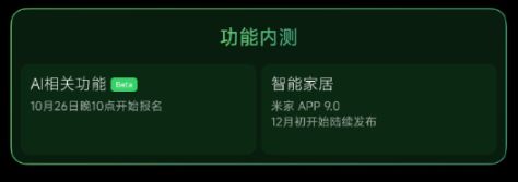 国际版首批设备将在2024年第一季度开始推送正式版,AI功能将于今天晚上10点开始报名内测,智能家居则在12月初在米家APP9.0上开始陆续发布!