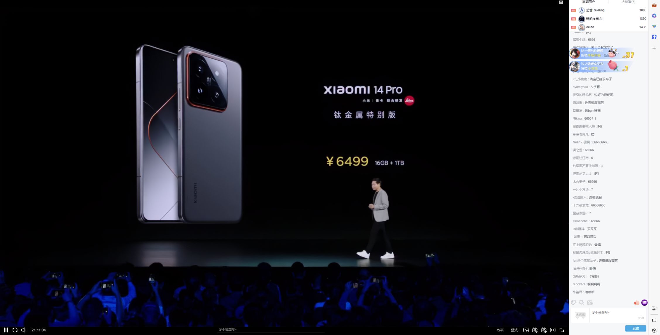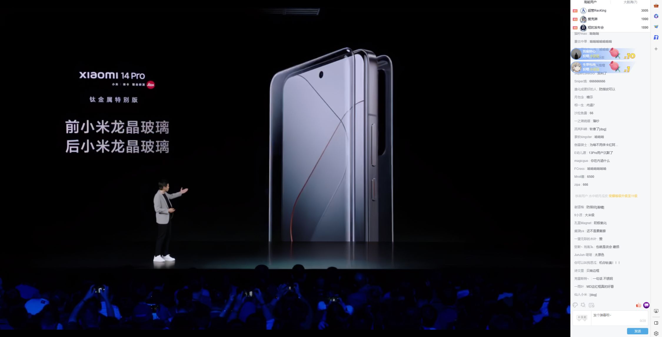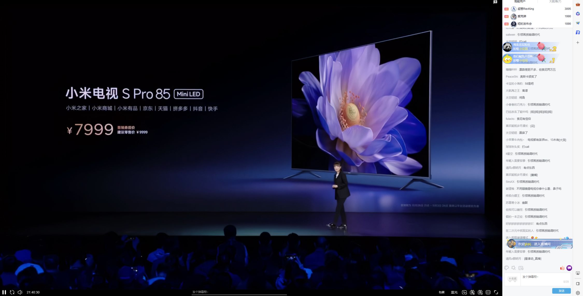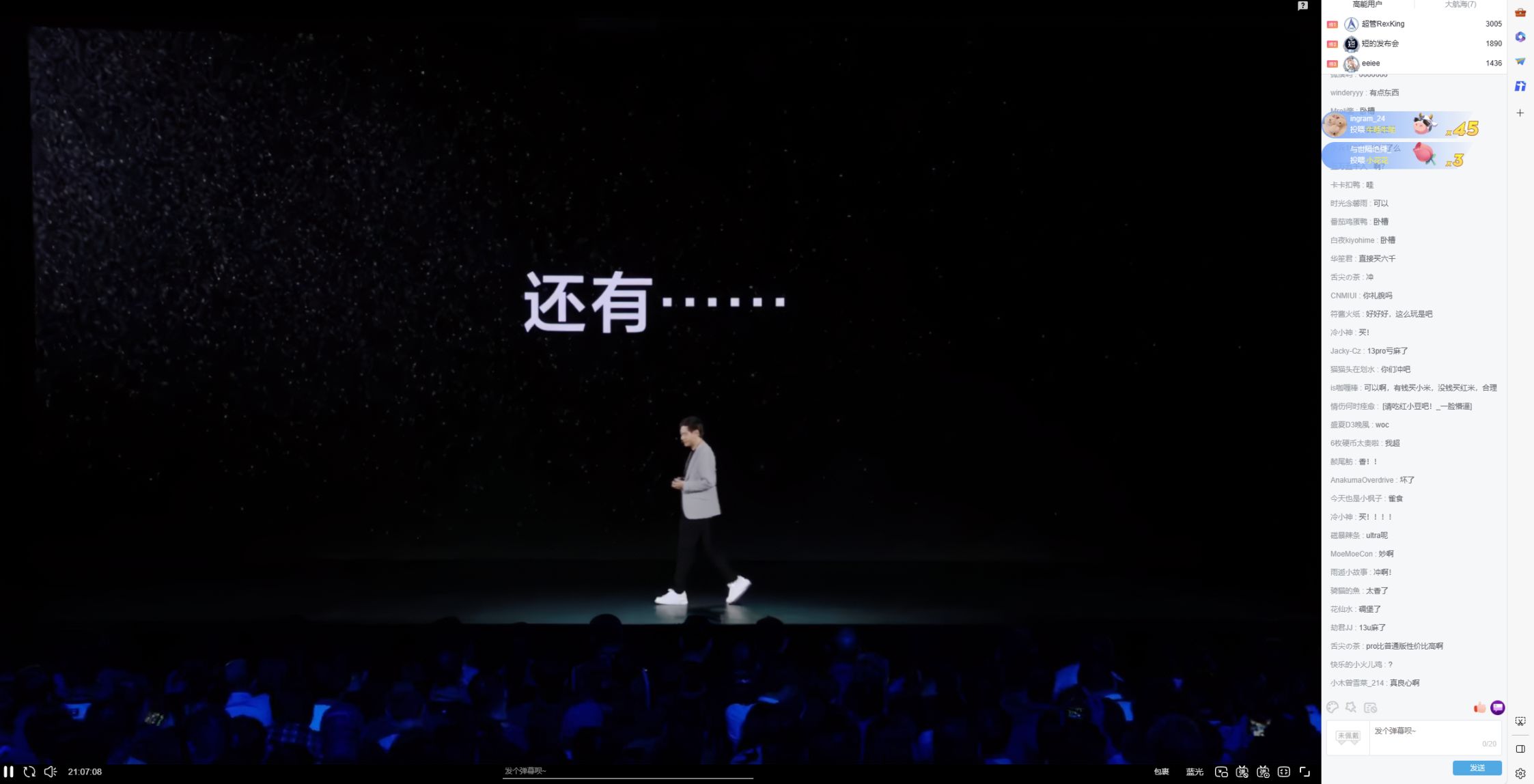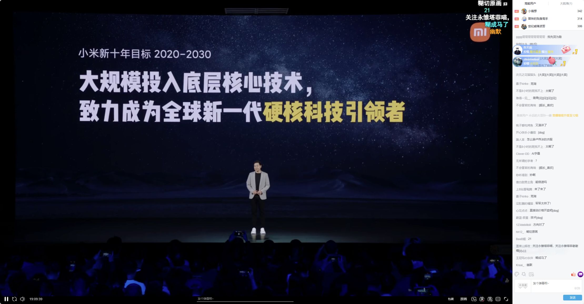 好家伙,今晚雷军是报幕员。说了几句又下去了。