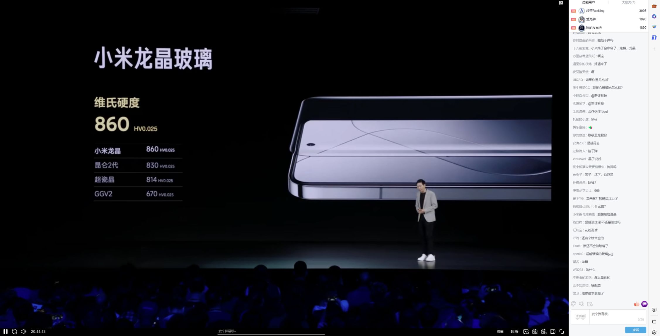 自研小米龙晶玻璃,对比IPhone微晶纳米和华为的昆仑玻璃,而且比IPhone和华为的更硬。