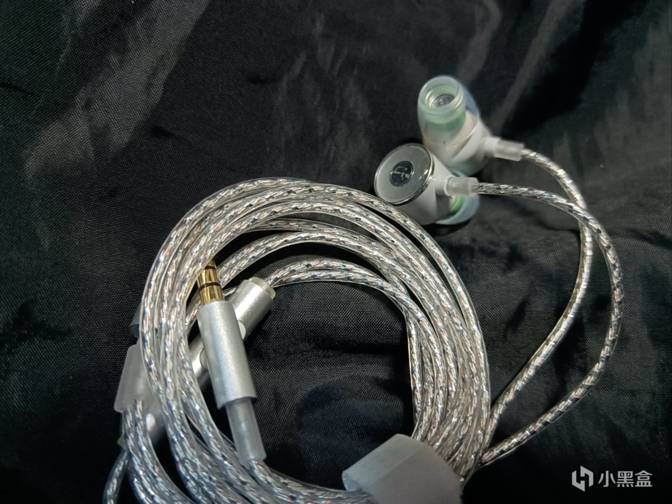 线材采用的是高纯度56芯4N无氧铜镀银线材,在声音方面更加通透,手感较柔软,整体观感不错,不易打结,日常佩戴的时候会比较便捷,采用了单按键线控,装载了一颗高保真极体咪头用于收音,无需拿起手机即可实现上下曲目切换功能。