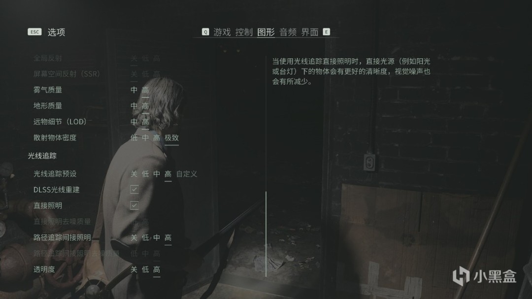 其实烘托出如此游戏效果本身就需要强大技术支持,在游戏设置中,我们发现设置中提供了高阶的光线追踪设置,包括投入实用的路径追踪间接照明,直接照明(RXDI),也包括近段时间被经常提起的DLSS光线重建。
