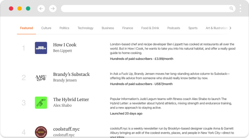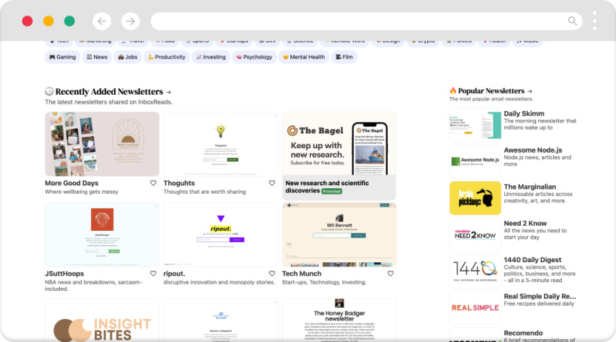 一款聚合各行業和主題的郵件訂閱平臺,收錄了許多海外內容資源,包括科技、旅行、食物等內容,也支持個性化配置服務。