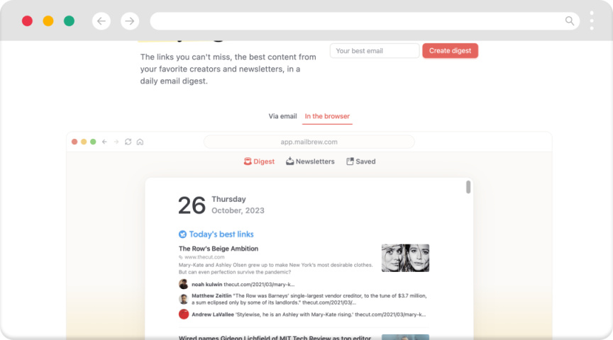 Mailbrew 可以幫你把關注的信息聚合成一封電子郵件,每天發送到你的郵箱,支持RSS、社媒動態、Newsletter等形式內容;並支持以天、周、月等週期定時投遞。