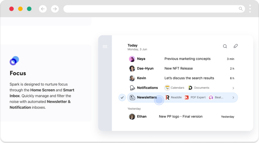 SparkMail 提供了相當順暢和舒適的郵件瀏覽體驗,同時智能化的郵件整理幫助用戶真正關注最重要的郵件信息,同時近期添加了AI功能,是真正的神器,但是由於服務器在國外,國內用戶無法及時收到郵件和提醒,這對用戶體驗傷害很大。