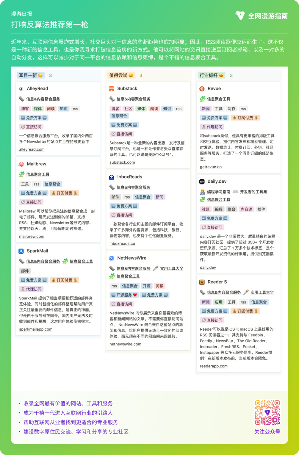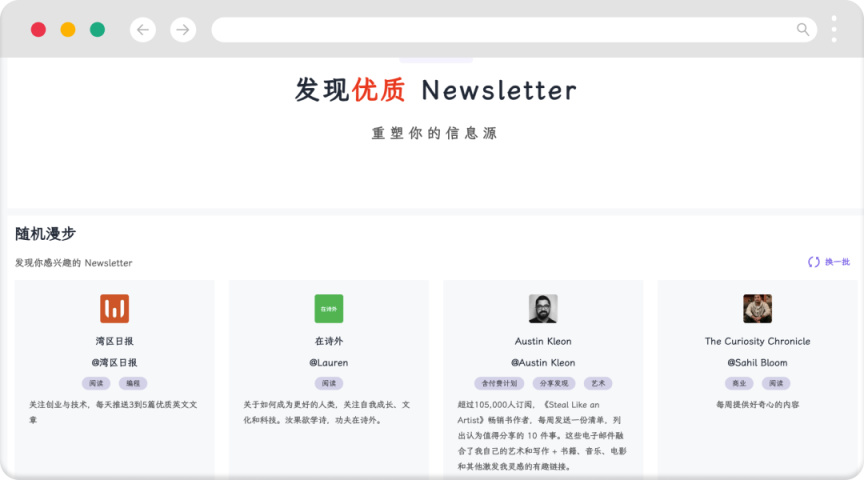 一個信息聚合服務平臺,收錄了國內外兩百多個Newsletter的站點並且在持續更新中