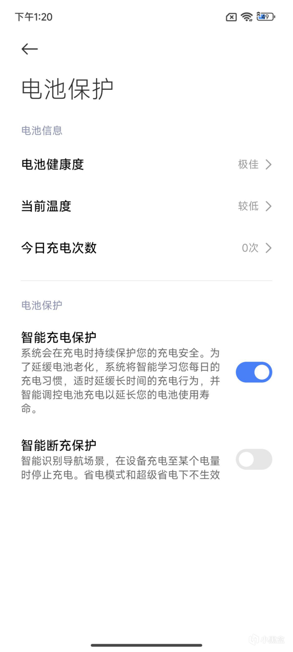新的智能断充保护,主要应用在导航场景,在开启后导航时充电至某个电量时,便会停止充电,保护电池。