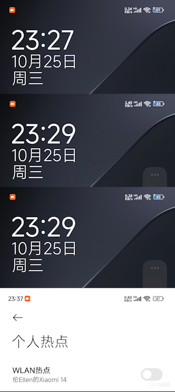 而在诸如充电、开启热点、静音勿扰等场景中,提示动画更明显、“更加灵动”了。