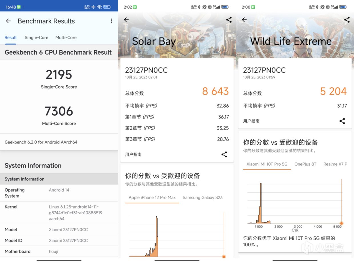 GPU升级到Adreno 750,3DMark Solar Bay测试得分8643分,Wild Life Extreme得分5204分,安卓平台历史性的超过了苹果A17 Pro。