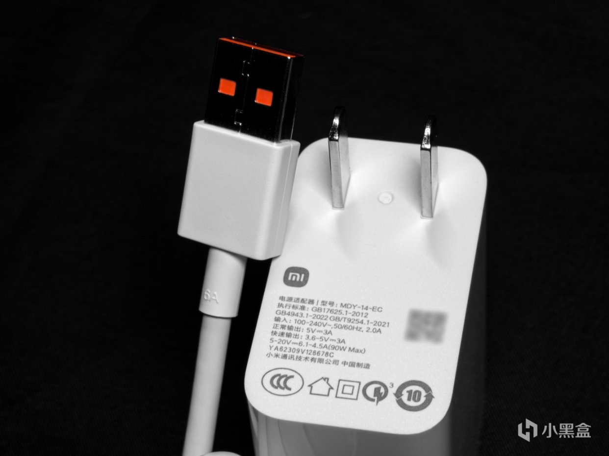 型号是13 Ultra同款的MDY-14-EC,单口Type-A,接口内有标志MI CHARGE TURBO的橙色处理。