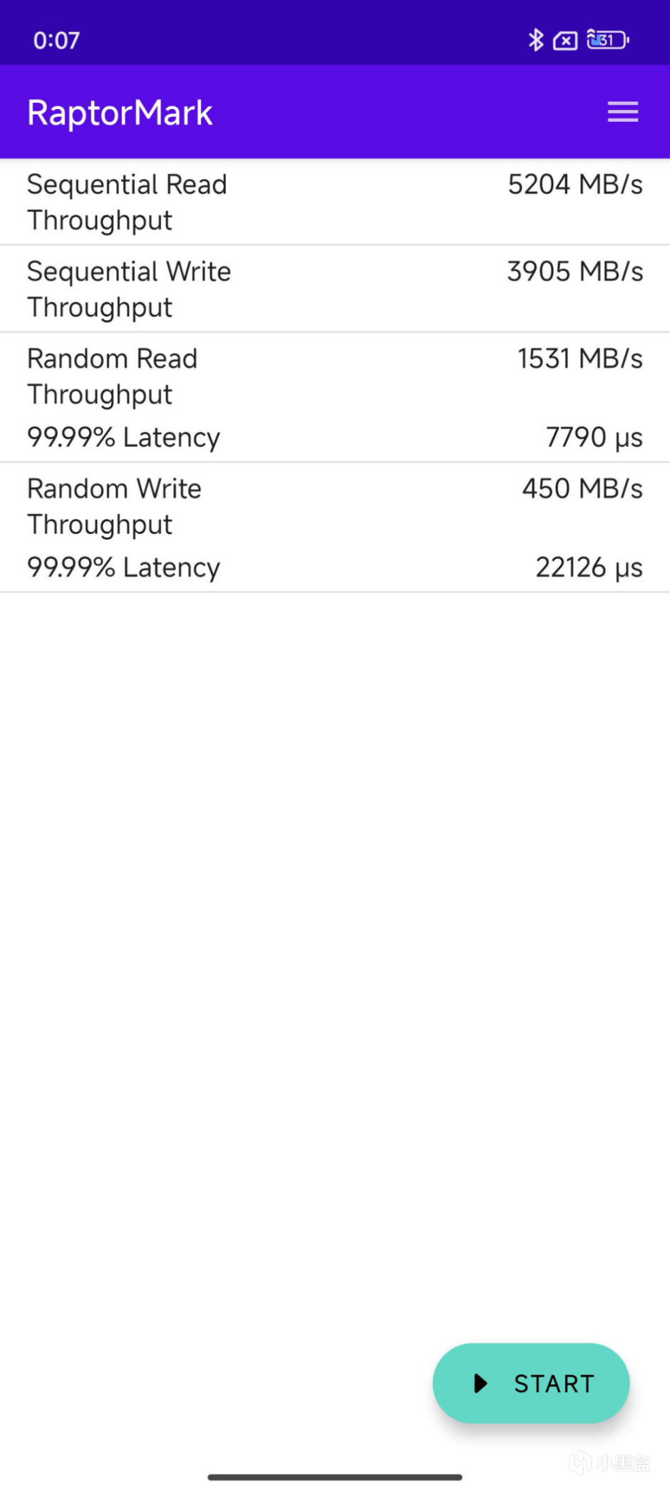 UFS 4.0闪存在RaptorMark测试中,顺序读取达5204 MB/s,顺序写入达3905 MB/s,随机读取达1531 MB/s,随机写入达457 MB/s。32位的AndroBench测试已经不再兼容。