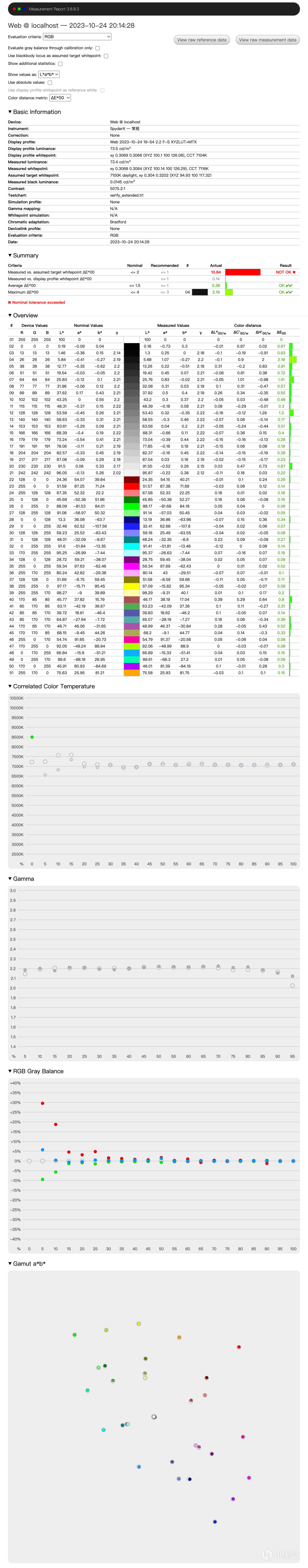 鲜艳模式下,色域覆盖做到了99.9%的sRGB和99.9%的DCI-P3,色域容积达到了176.0%的sRGB、124.6%的DCI-P3。