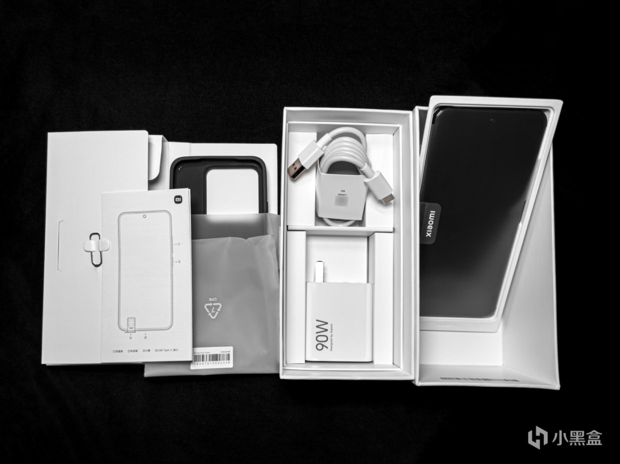 盒中除了小米14主机外,还有电源适配器、USB Type-C数据线、手机保护壳、说明书、插针。