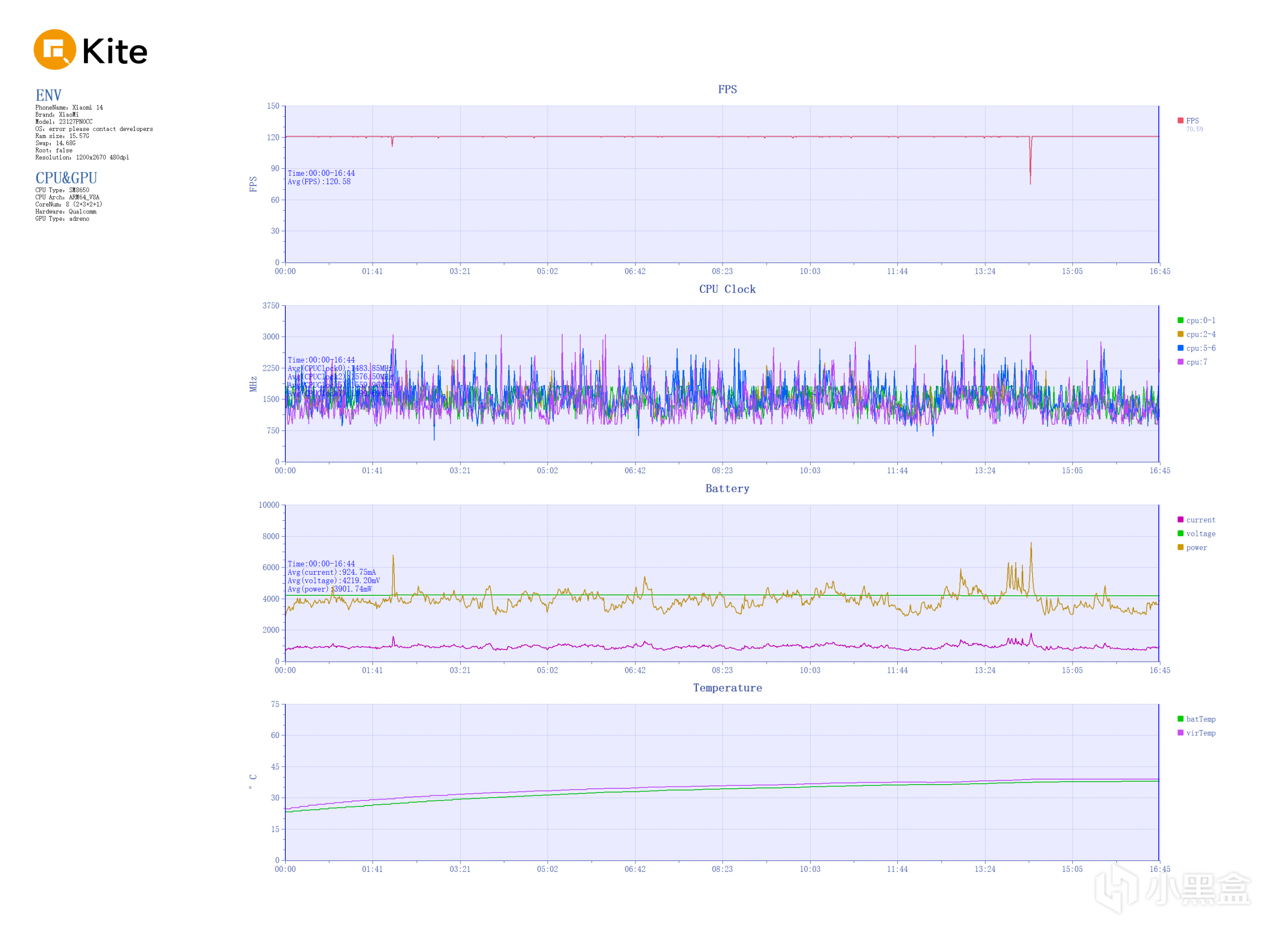 王者荣耀就更不在话下了,极高帧率超高分辨率极致画质,一局近17分钟下来,平均帧率120.58,功耗仅3.9W。