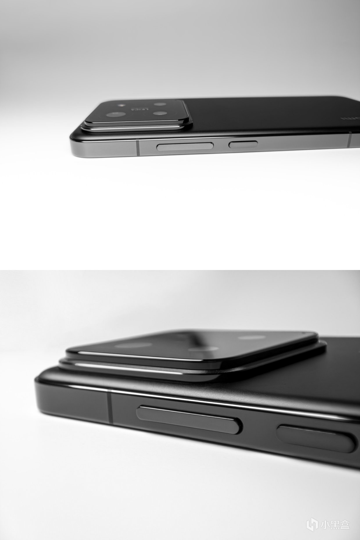 镜头外圈都有类13 Ultra的反光环装饰,LEICA标和参数则纵向放在了模组中间。整个模组外加了一圈巴黎饰钉纹理。