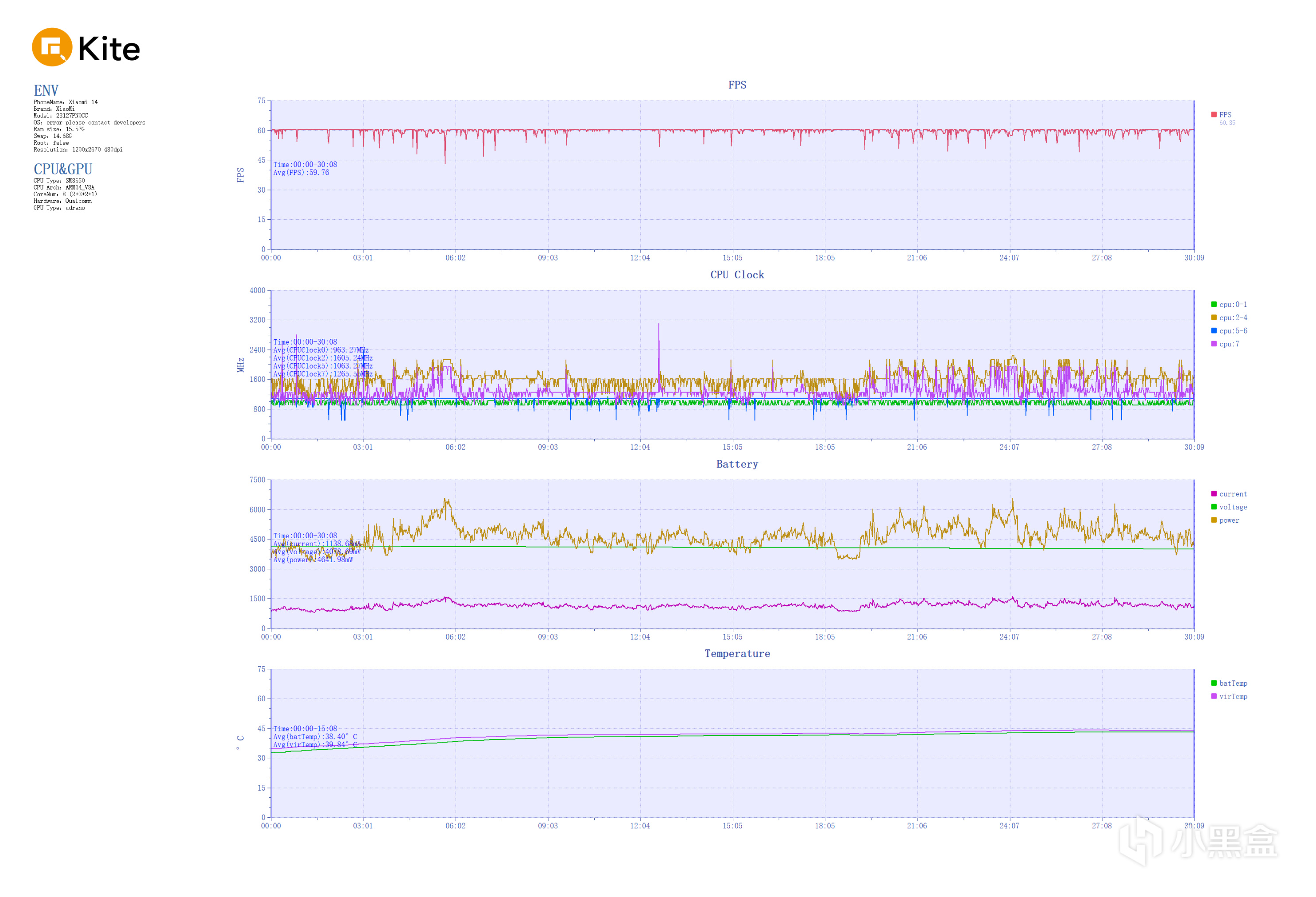 30分钟原神全高60帧,平均帧率59.76,几乎满帧,平均功耗4.6W——比大屏的K60至尊还要略好一丢丢。
