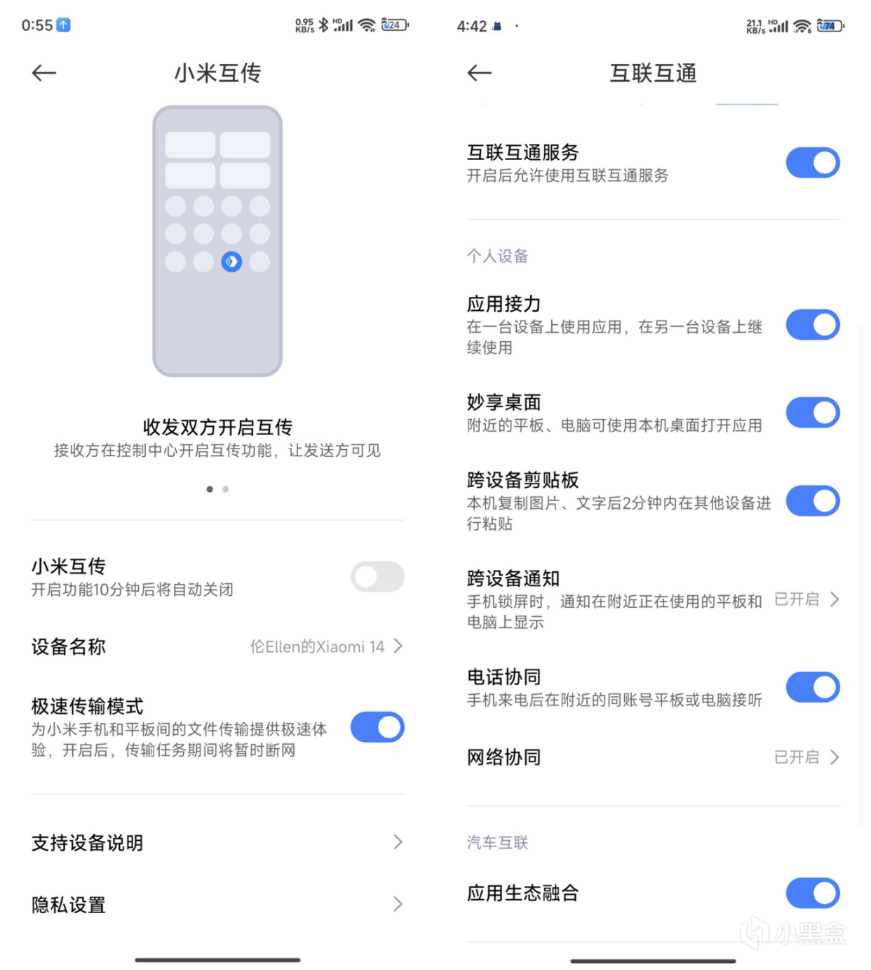 互联互通进一步升级,但手边暂时没有支持新版互联互通的其它HyperOS设备,就不再测试。