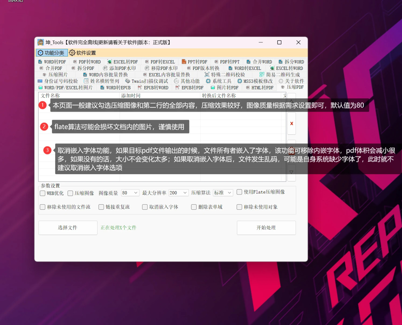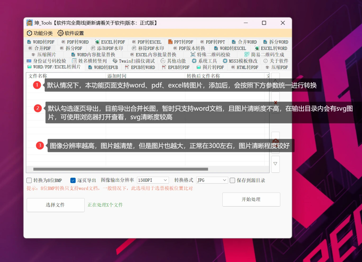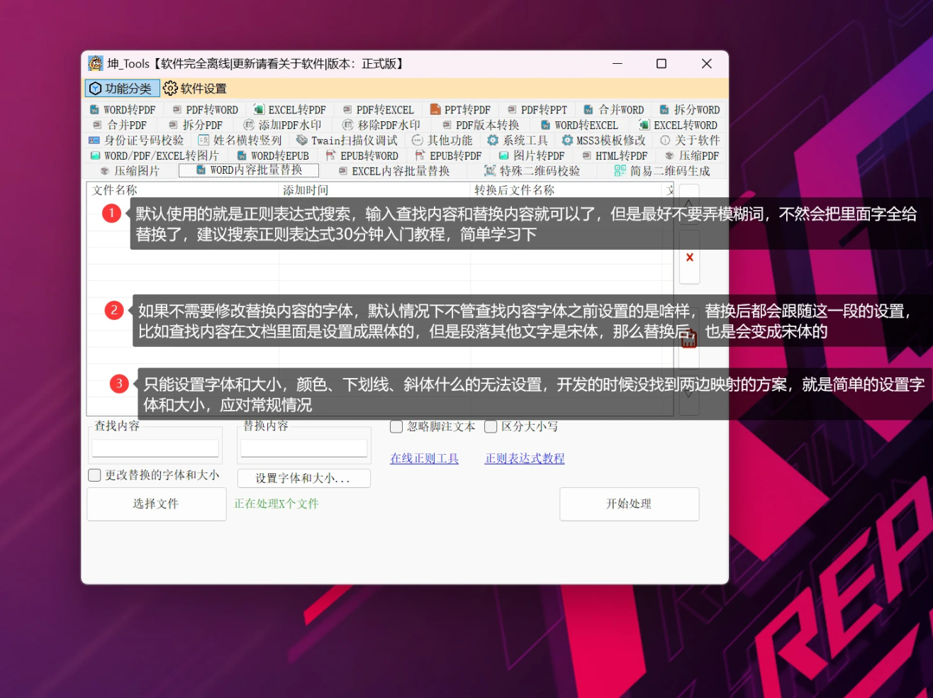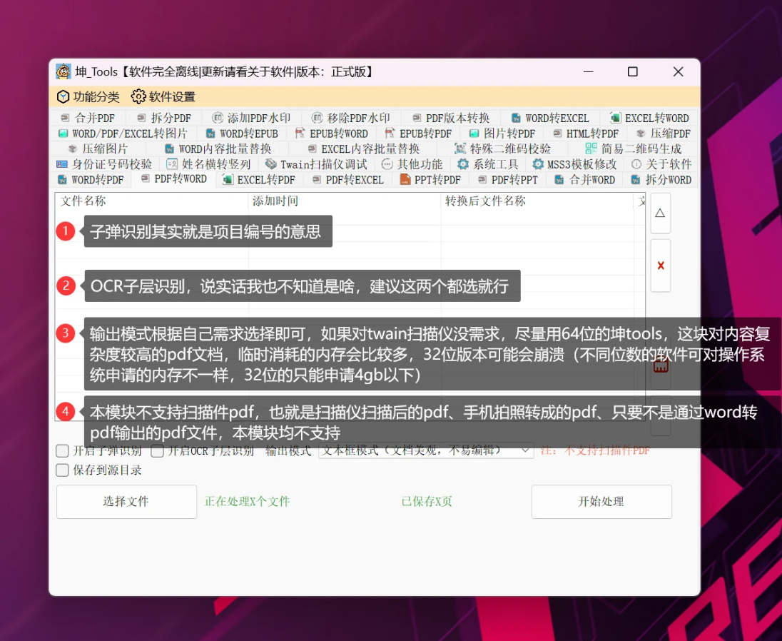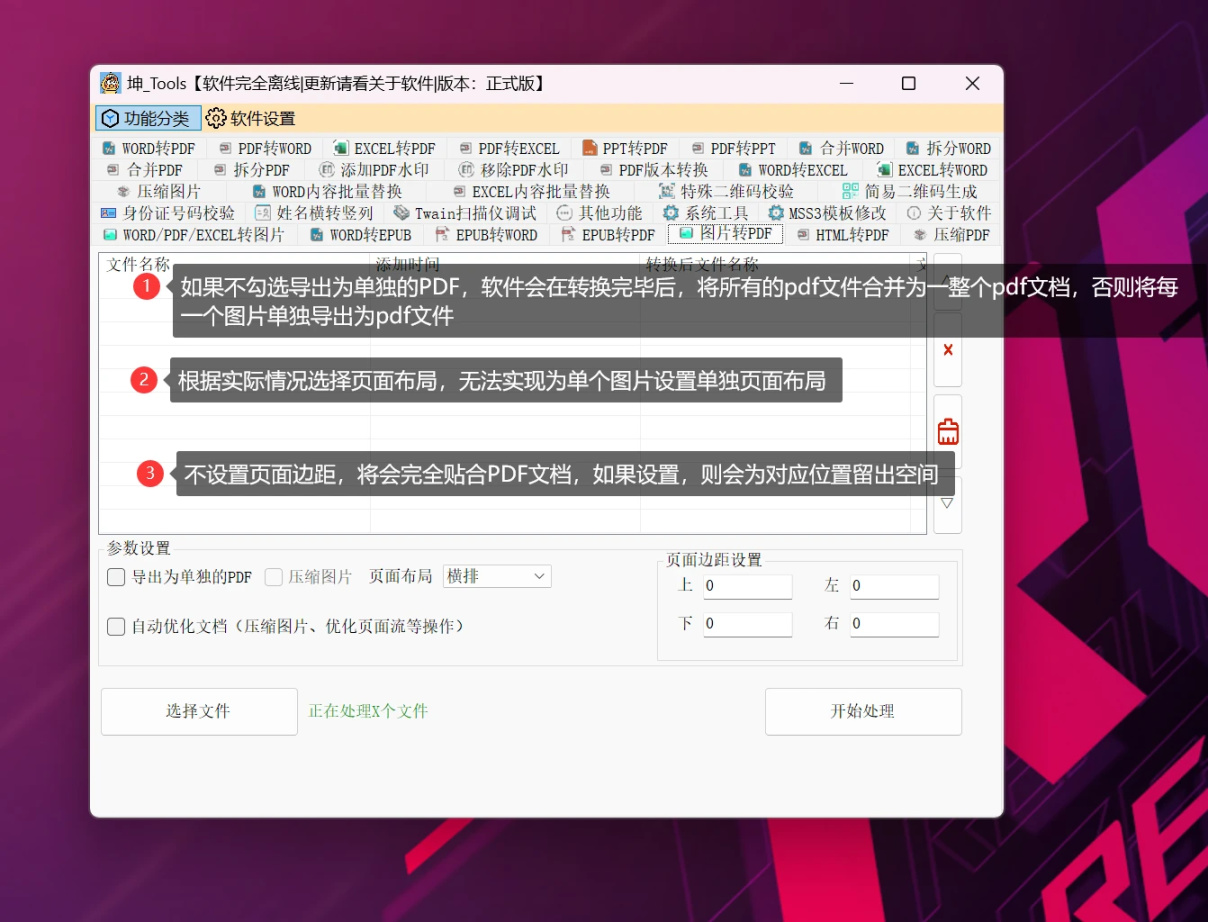 开发的原因很简单,仅仅是2020年那会儿,word转pdf的需求增多,而且都是批量转换,用了某个转换器以后,发现中间位置的部分pdf格式不对,于是所有的pdf全部重新用word另存为,大概是50-80份word,就一个个另存为,当时催的还急,也没办法了,所以那以后我就先后写了word转pdf的工具给自己用,第二个版本的工具发布后,有的网页希望我做pdf转word等等功能,于是今年我就正式准备做一个类似集合型的工具,把常用的功能都整合在里面,方便自己,也方便他人。
