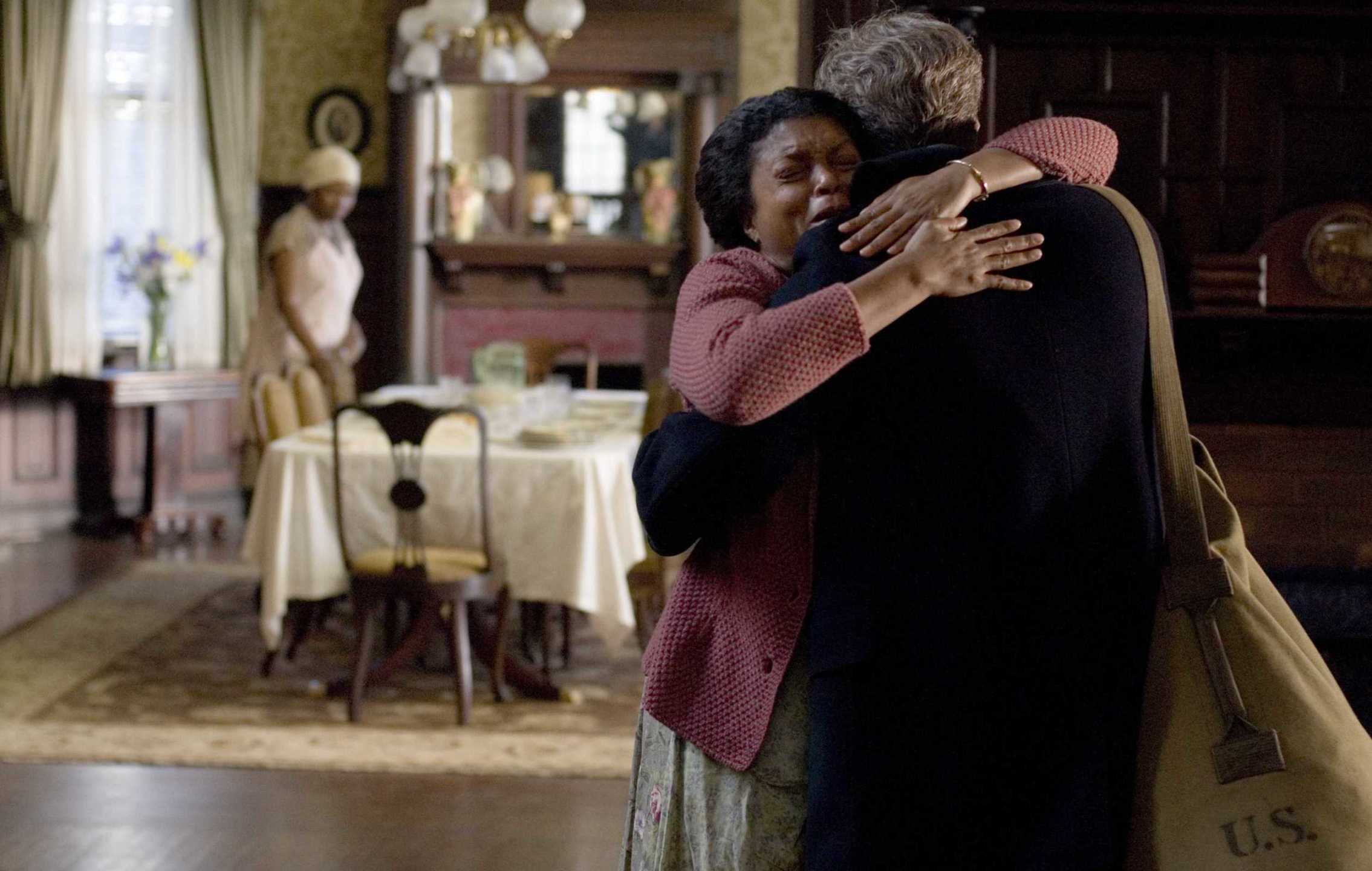 养老院的护工是一对黑人夫妇,结婚多年一直没有孩子的黑人妈妈坚信本杰明就是上帝给予他的孩子,即使他拥有一副和养老院老妇人的前夫一般的面孔。影片中黑人妈妈从进场到离开,都是一种圣母的光辉形象。她是一位虔诚的教徒,对待养老院中的每一位老人总是充满着爱,而对待这位老小孩本杰明更是如此。这样一个出现次数不多的角色却让我心中最为触动,虽然妈妈没有哲人一般深奥的思想也没有多少文化,但每一句话语都像是在对生命的讴歌。