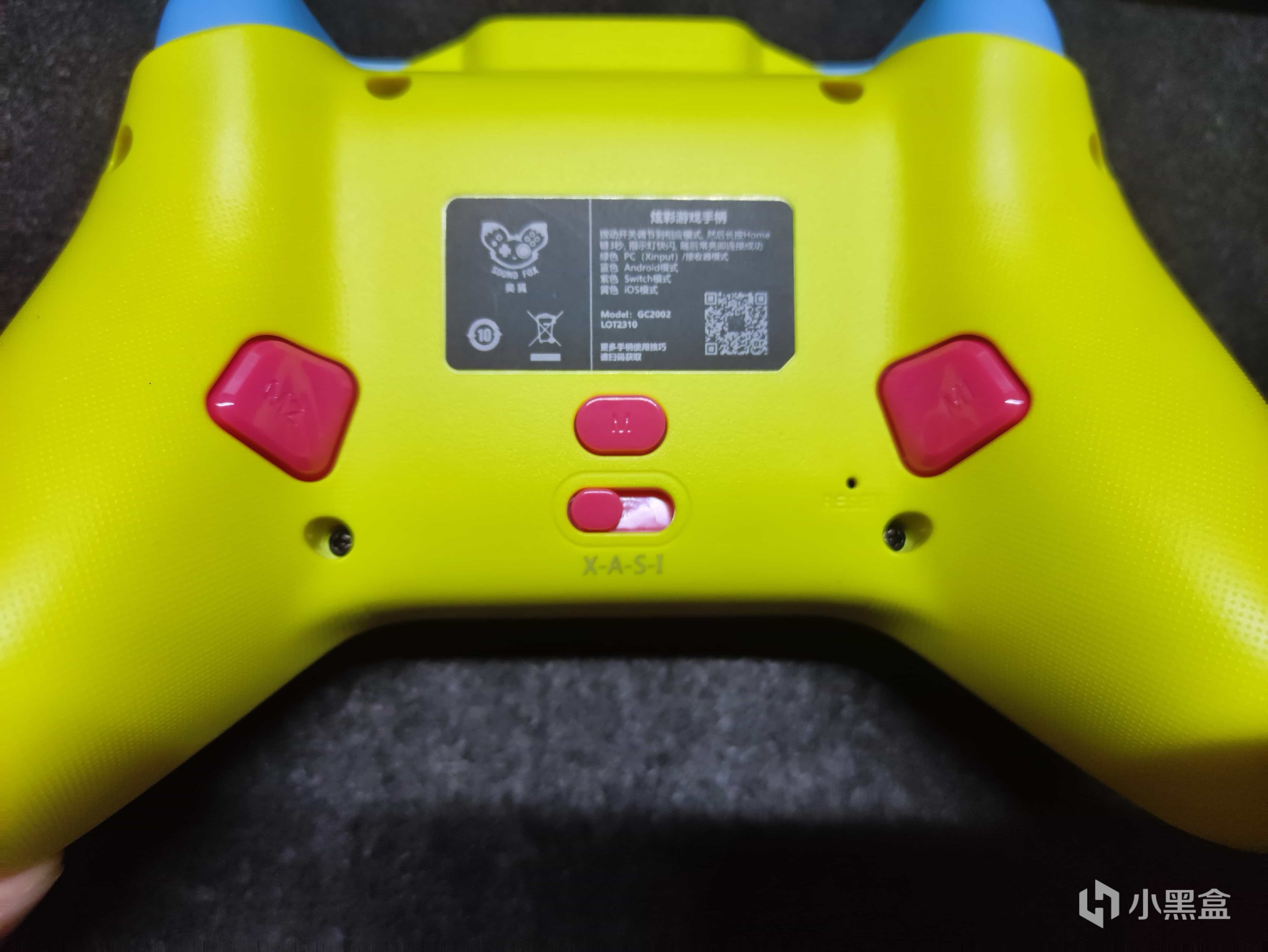 手柄的背部下方,你可以看到一个开关,有着四个档位,分别是X、A、S、I,分别对应PC,安卓,IOS和Switch四个平台。如果你之前通过蓝牙连接了手机,在由PC切换到手机之后,按下home键一秒钟即可直接切换。这个功能对我帮助很大,最近经常玩手机上的一款游戏,经常用到这个功能,非常好用。