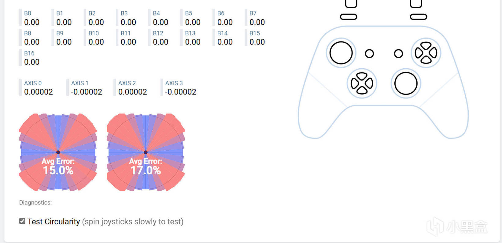 这个功能对于一些没有app的手柄来说简直称得上福音。玩家按下后面的M键和旁边的背键M1或者M2(官方介绍写的是M1M2,但是设置里写的L3和R3,属实是没有想到),前面的灯变为白灯之后同时短暂震动之后即可调整为无死区模式。需要注意的是,关闭手柄重新启动需要重新调节。