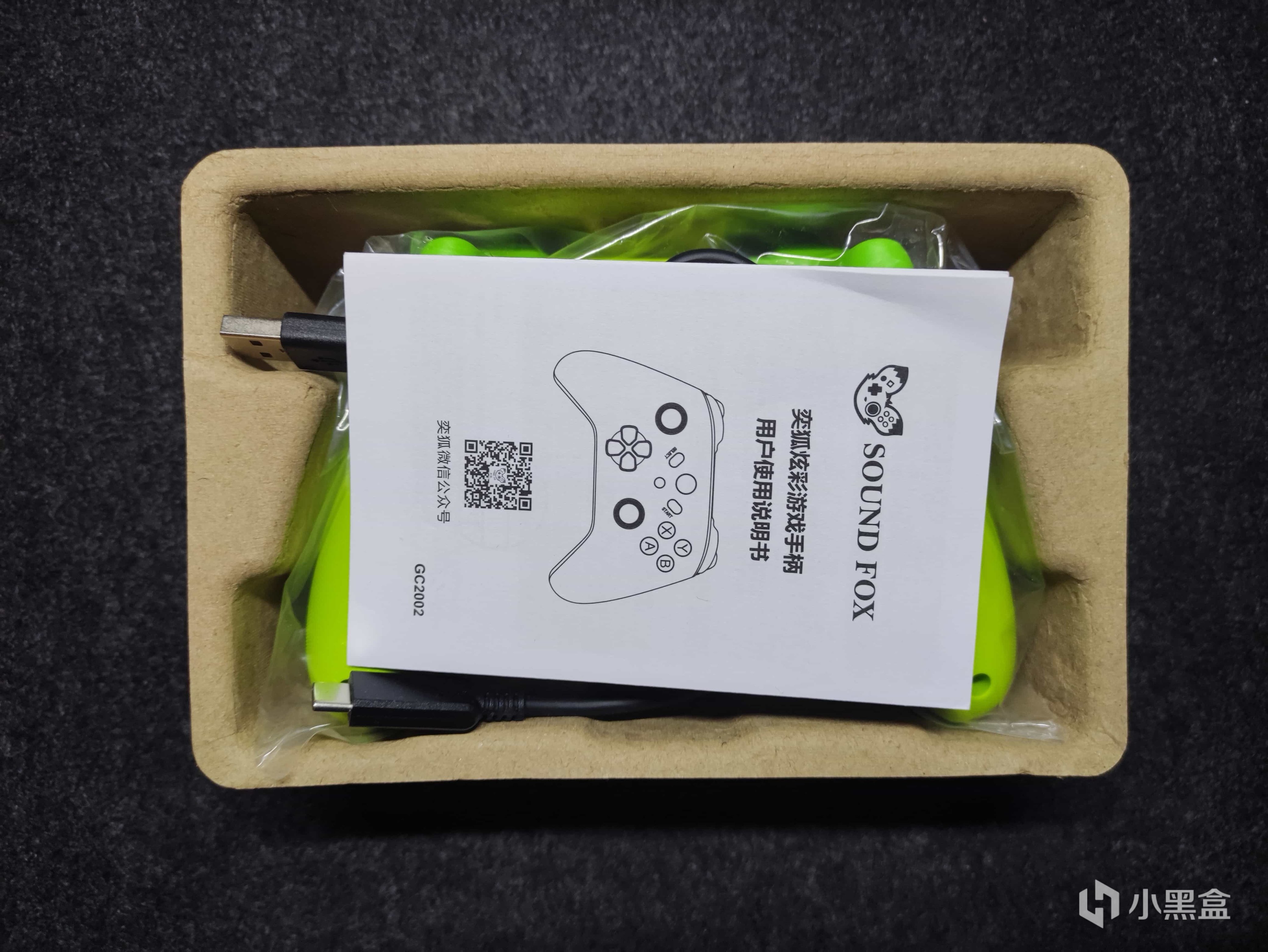 怎么说,低价位的手柄都学习到了xbox的优良节约习惯,外包装看起来比较简陋,一个不是很大的盒子配合上和手柄同款的靓丽色彩。