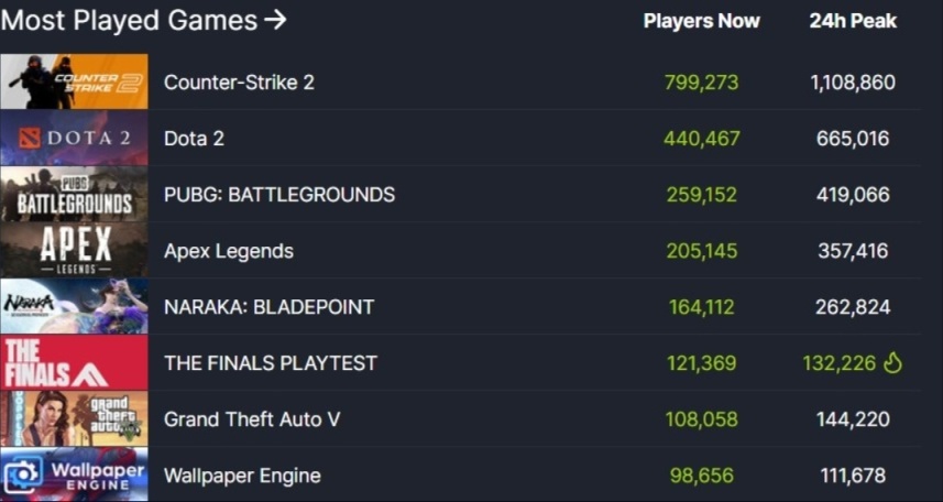 1. 《The Finals》公测热度高涨,同时在线人数超越《GTA5》和《COD》等大作。该多人射击游戏由前DICE成员打造,以全地形破坏为特色,吸引了大量玩家。截至发稿前,该游戏在Steam上同时在线人数突破12万,超越了知名游戏如《三男一狗》和《使命召唤》,24小时内峰值玩家数达到132,226人。本次公测预计将于11月5日星期日结束,预计这一数据还将继续增长。开发商Embark Studios表示数百万人已报名参与游戏测试。