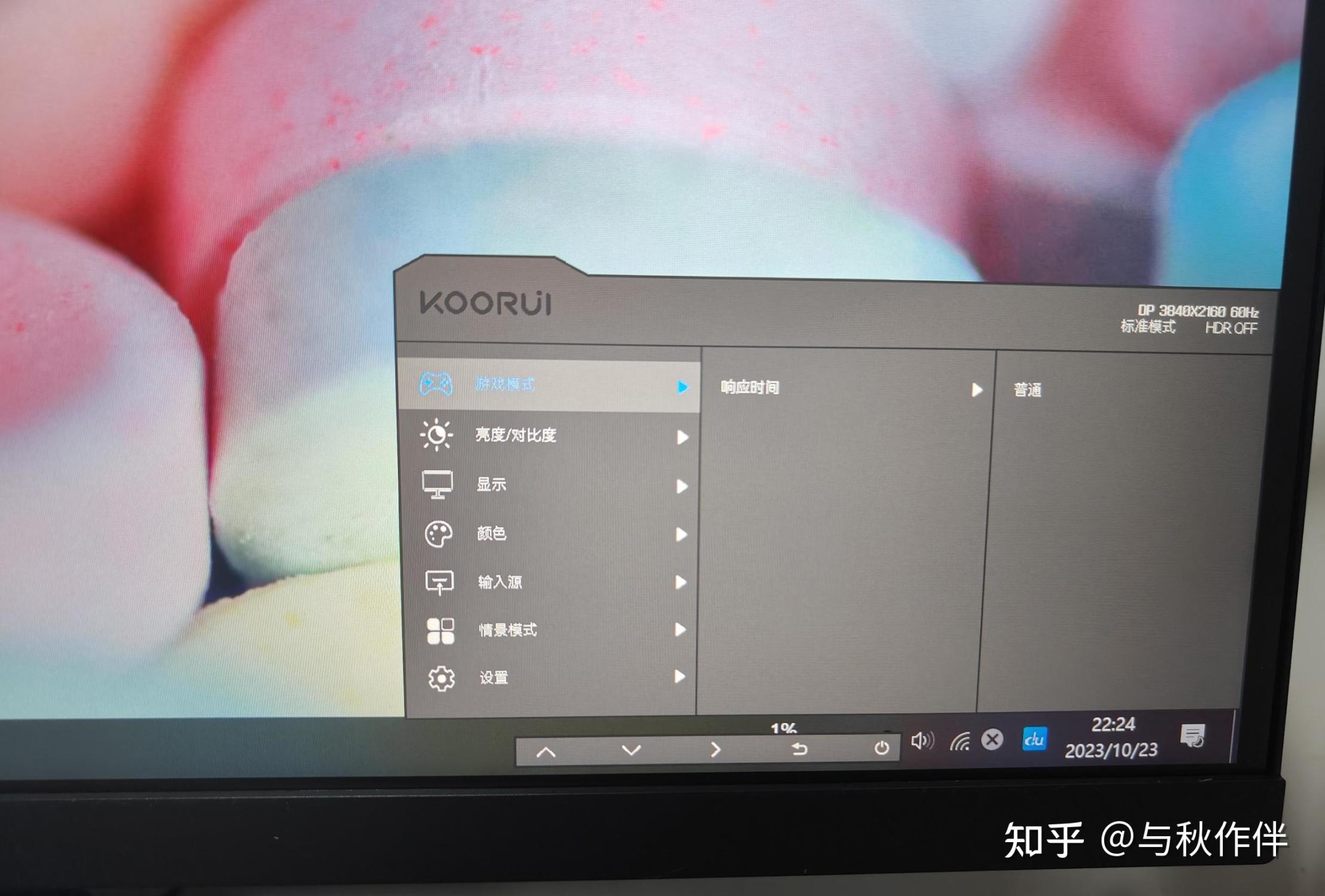 显示器的调节菜单是灰色的,毕竟这款显示器主打商务和办公(虽然看电影超爽),游戏模式可以调节响应时间,普通、快速、极速三档可调,不过我用普通档其实也没感觉到延迟。