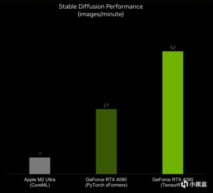 借助 Tensor RT 加速的 Stable Diffusion 可以加快选代速度,减少等待时间。在RTX4090 上,它的运行速度是M2 Ultra的7倍。