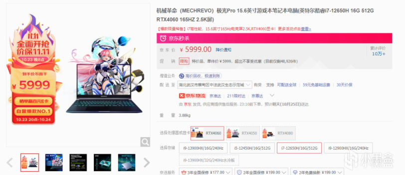 但是,架不住性价比高呀,i7-12650H+RTX4060只要5999元,对当时大喊革命的人来说非常有冲击力了CPU虽然有阉割,但是打游戏是够用的,屏幕是2k 165Hz对RTX4060显卡来说,刚刚好。RTX4060就是今年2K游戏的畅玩标杆。