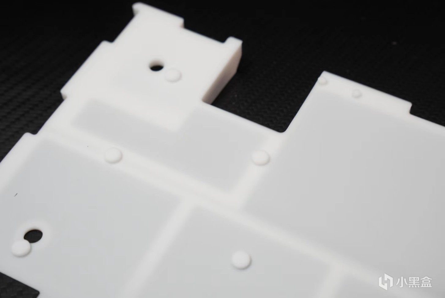 同時呢這個鍵盤也採用了pe聲優墊,那麼這個有啥用呢?因爲爲了燈光考慮,所以ixpe軸下墊進行了開孔的設計,但是開孔會影響鍵盤的聲音表現,所以增加了一層薄薄的upe填充,彌補一下,表現會更加的好一點。