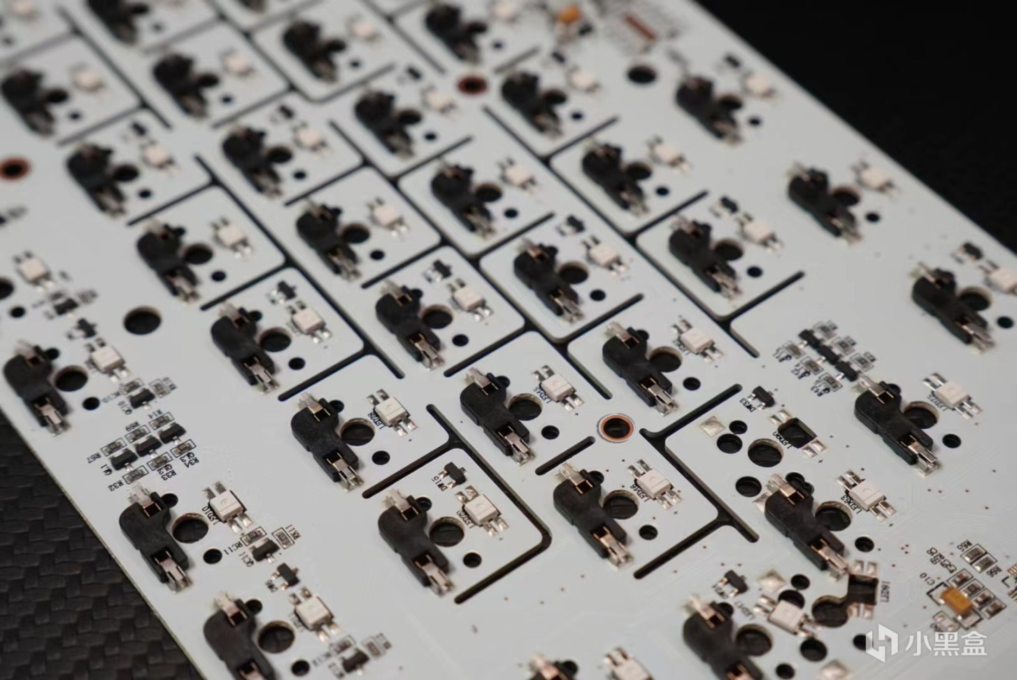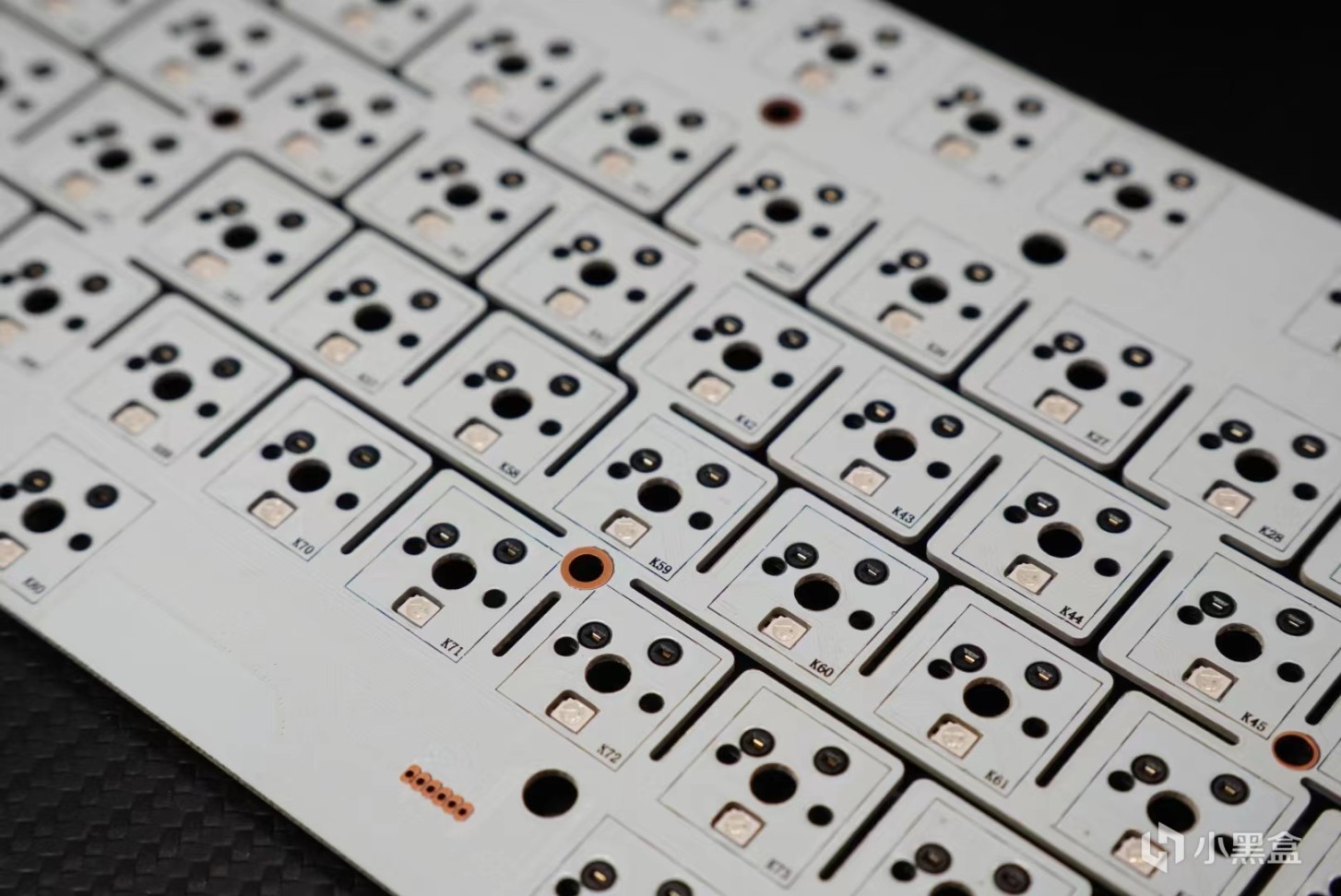 pcb這裏進行了單鍵開槽的設計,單鍵開槽的pcb可以讓鍵盤的手感一致性更好,pcb採用了下燈位的設計,同時呢這把鍵盤也有側刻鍵帽可以選擇。