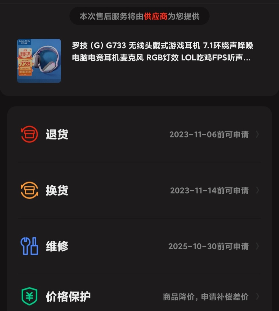 本人多次在京东购入罗技外设,至少在今年618时期自营都还是京东售后,最近看盒友反映自营的售后变成店铺售后了。正好我近期申请过售后,并刚刚拿到换新件,故进行分享。