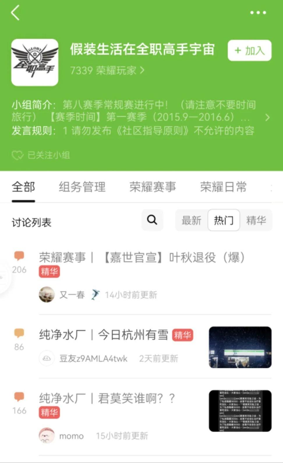 热搜之前,豆瓣“假装生活在全职高手宇宙”的7700多名组员,已经在这个乌托邦里捏造出了这个并不存在的大型赛事。