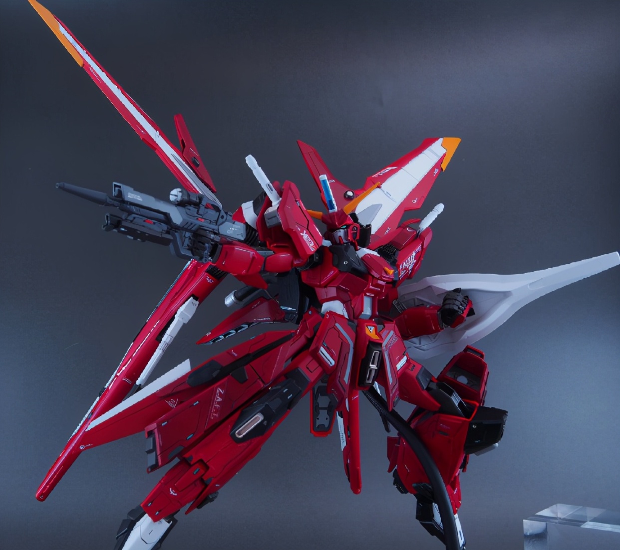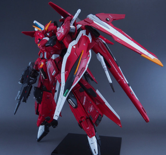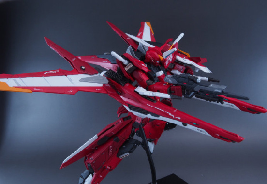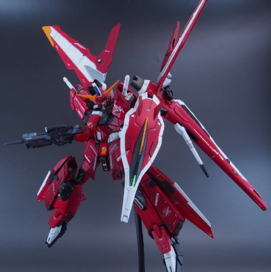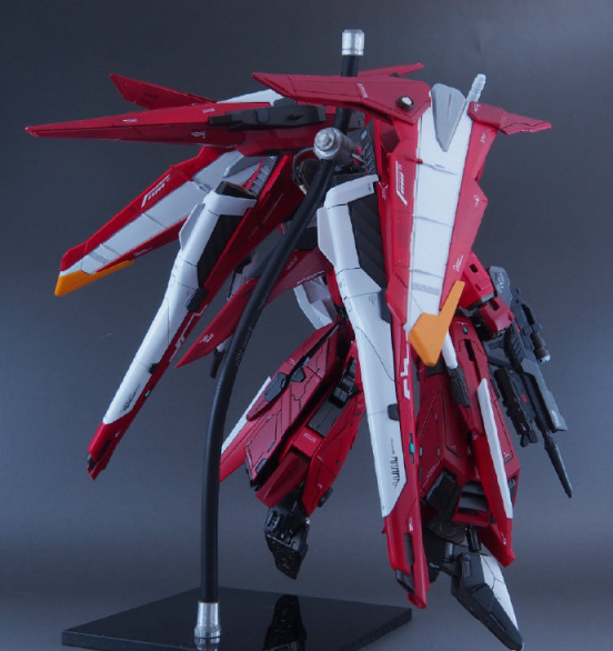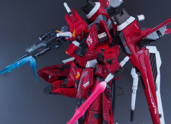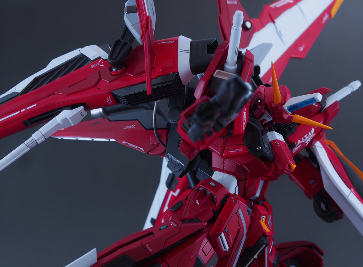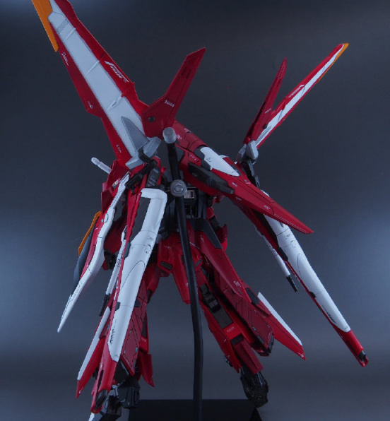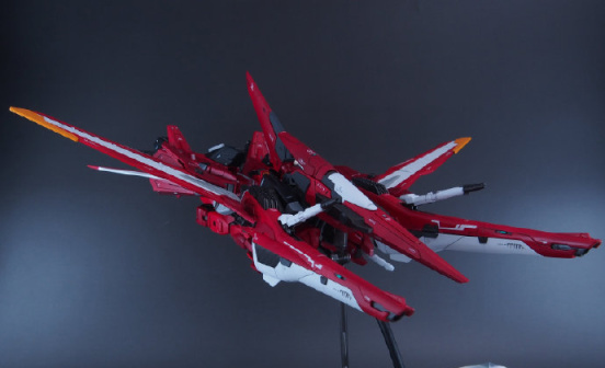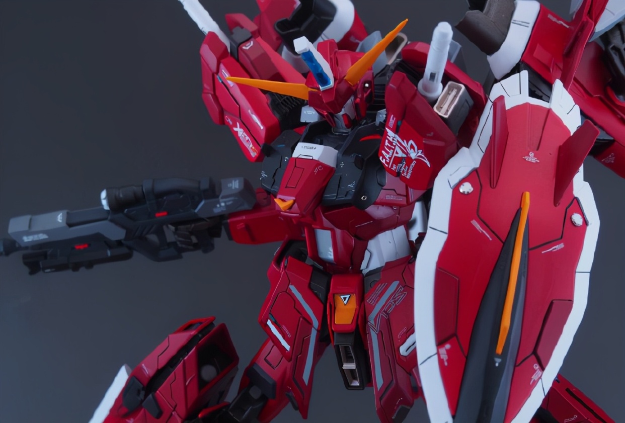 仔细看这款模型的主体我们会发现是用MG比例脉冲高达模型改造的,然后增加了正义高达、里歇尔等高达周边模型的零件,除了我们能看出的零件,大家能看出还用了什么高达模型零件吗?