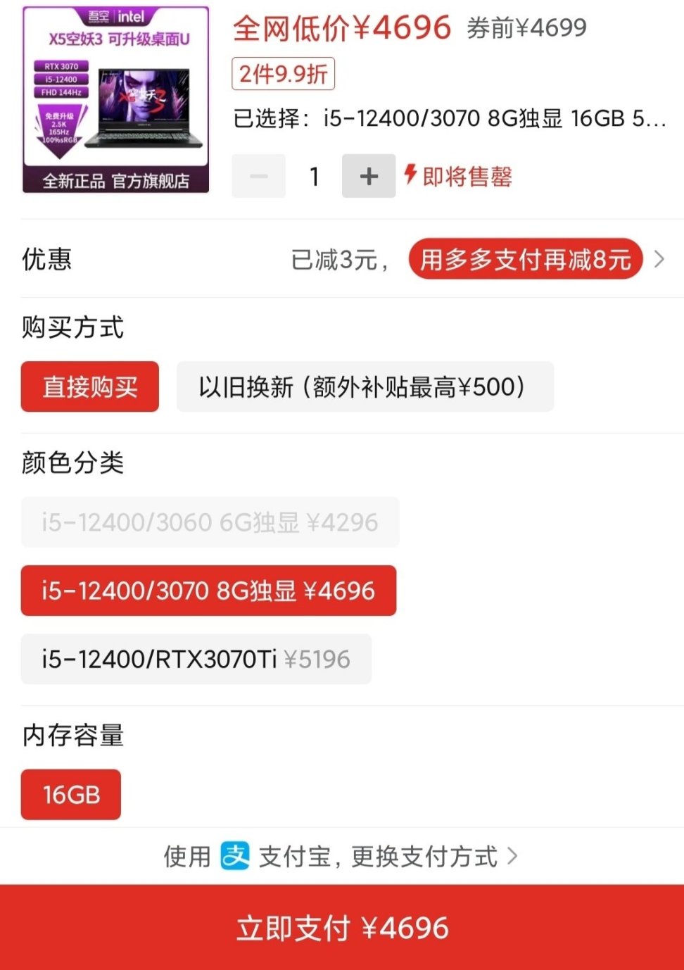 价格:4799(拼多多七彩虹雲奕专卖店)