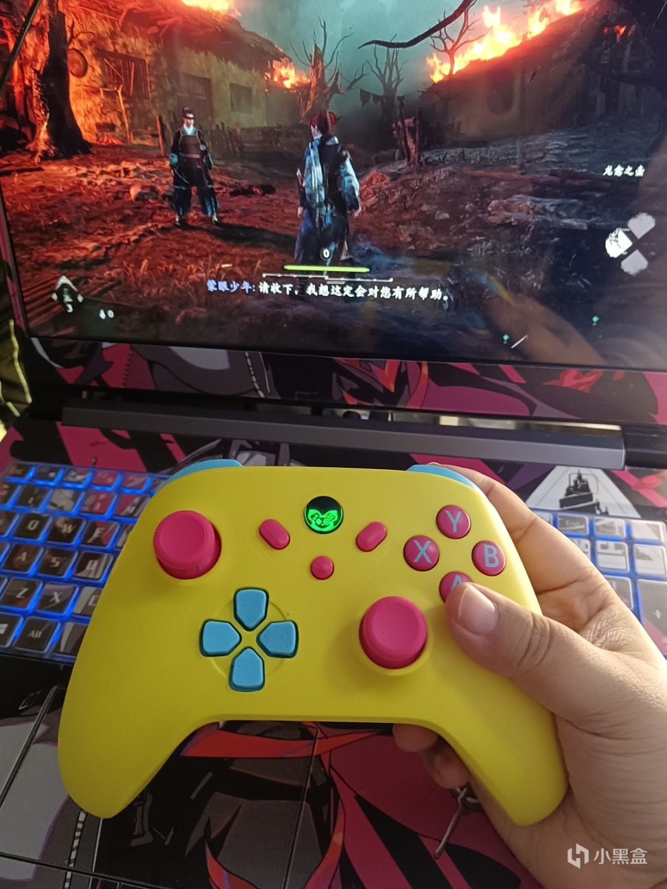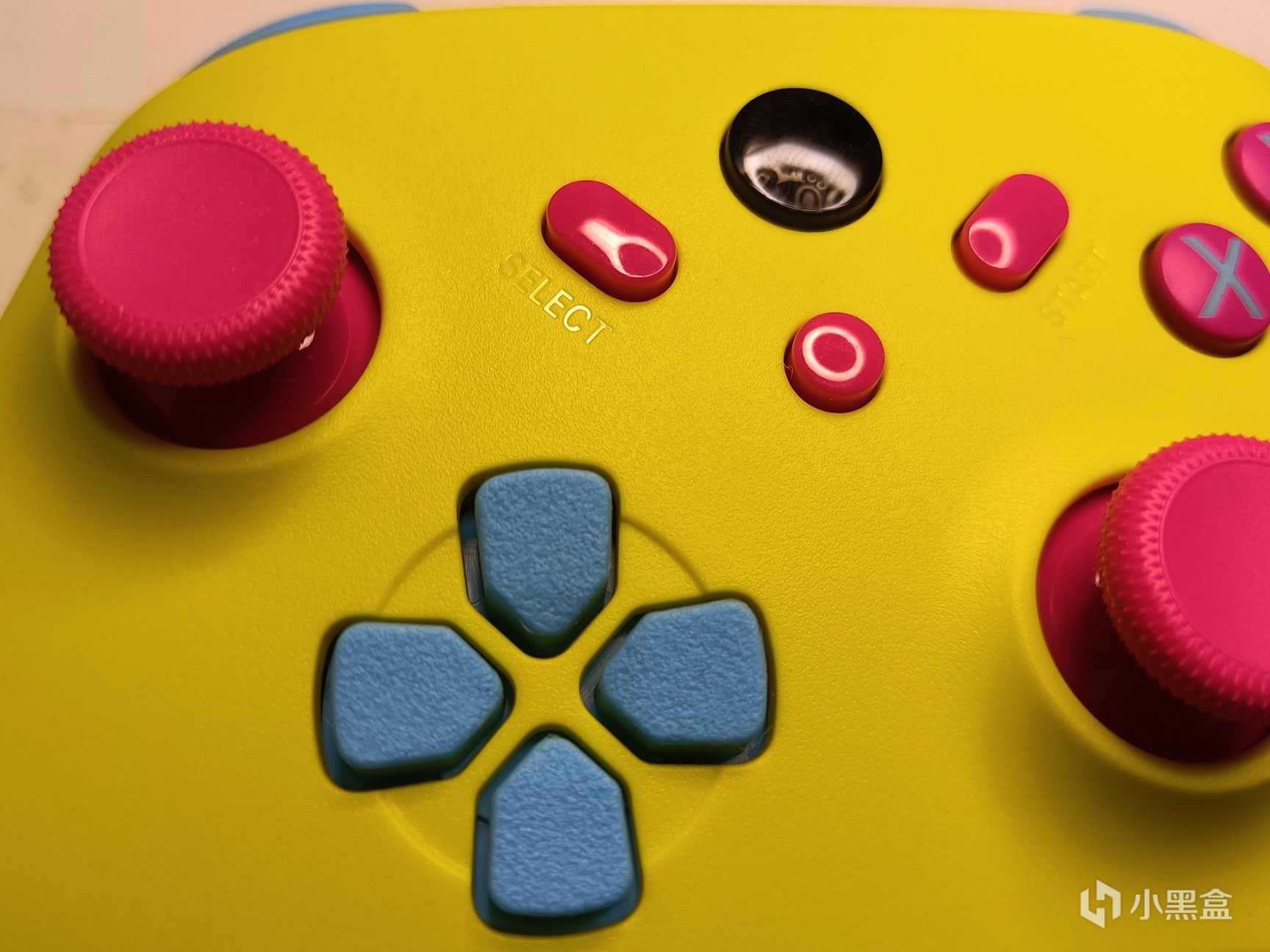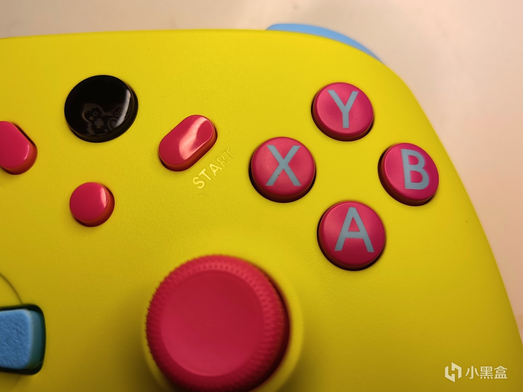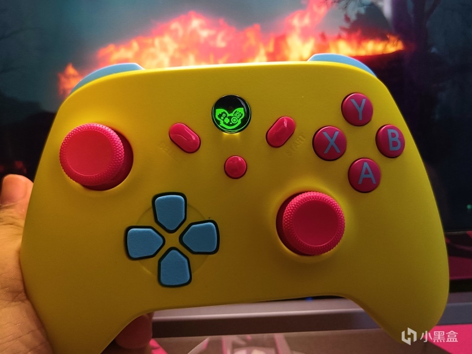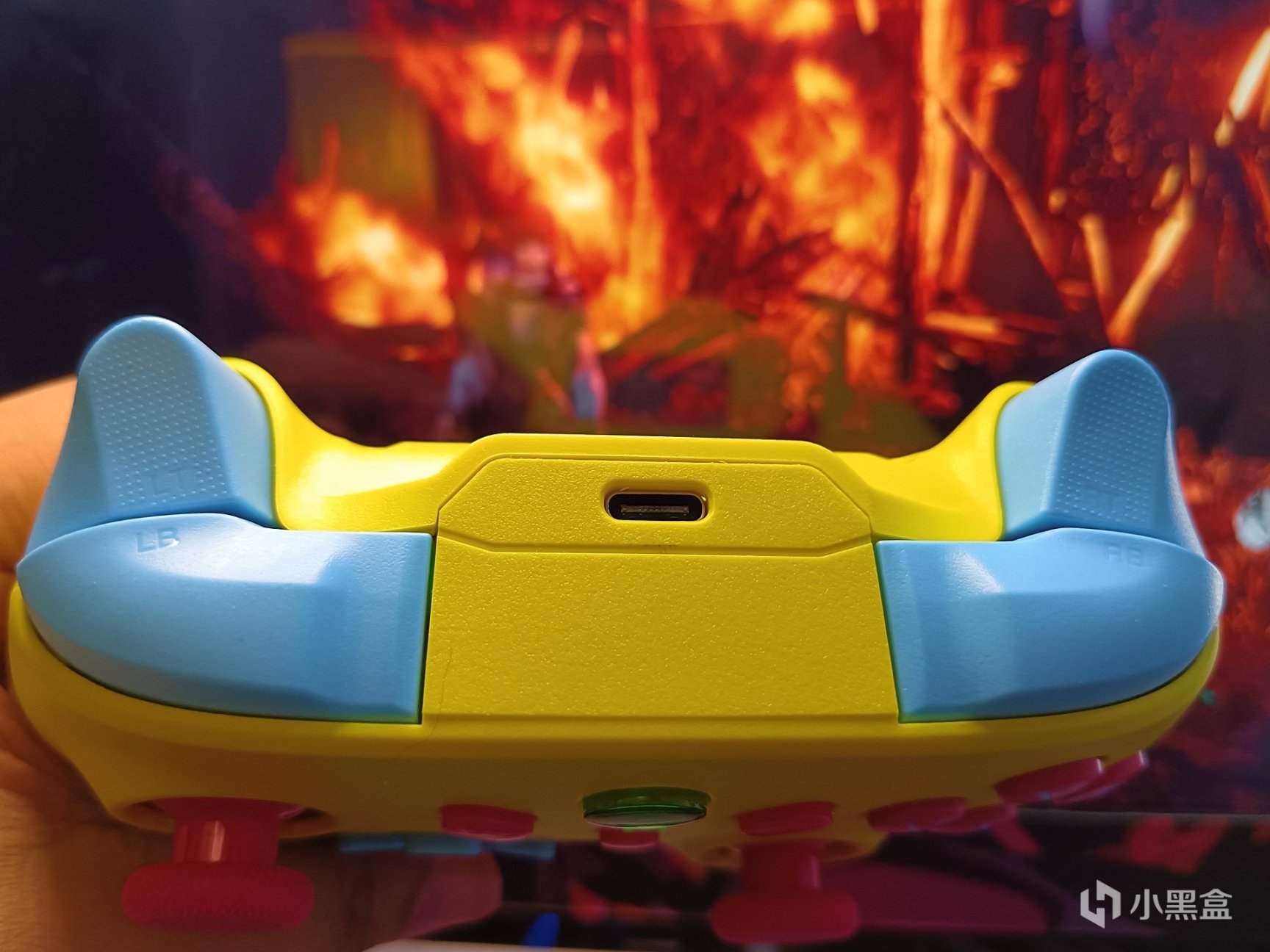 这次到手的游戏手柄采用了多巴胺配色,清新舒适的绿和温暖阳光的黄,暖色调的颜色搭配十分鲜明,结合XBOX布局的按键配色有种糖果卡通的感觉,满满的幸福感,扳机以及背部两边还有摇杆边缘都有凸出的小点形成防滑纹,作为女生几乎一眼就爱上了,此时已经完全看不上之前那款黑漆漆的游戏手柄!