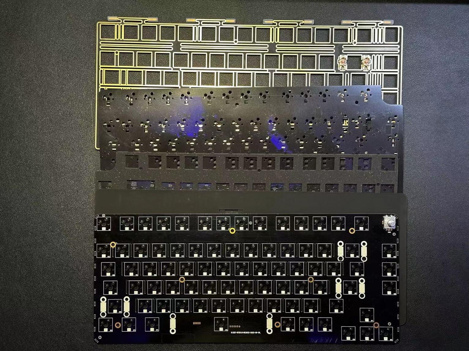 定位板:采用FR4玻纤定位板而且做了开槽处理,而且在量产键盘中FR4定位板是非常少见的,而FR4的好处在于硬度中等且韧性高。