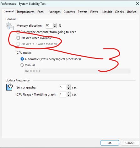 AIDA64的fpu烤鸡测试,12代,13代酷睿无法达到睿频,没有达到温度墙的情况下